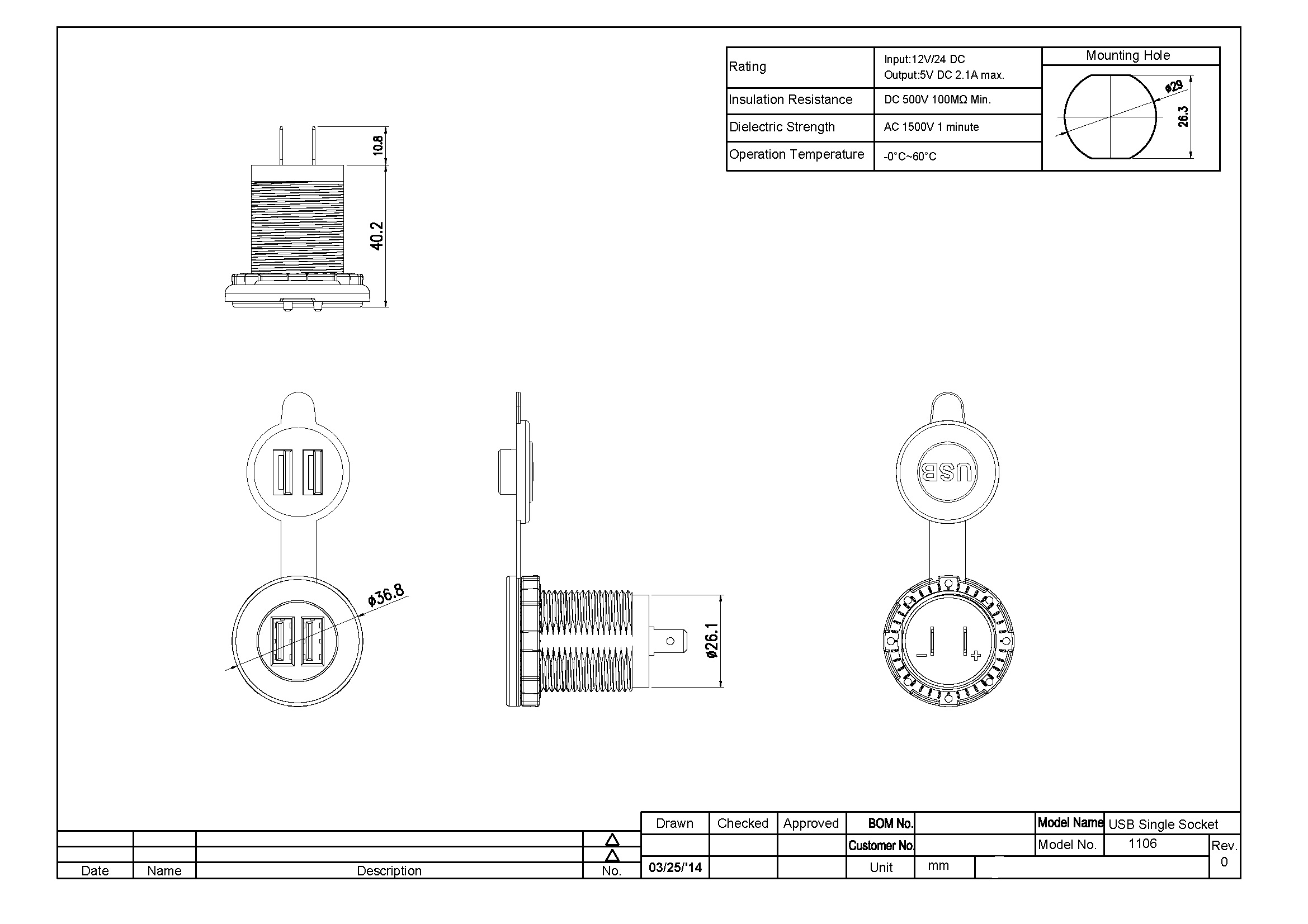 USB Charger 1106 Double USB Socket with Screw lock