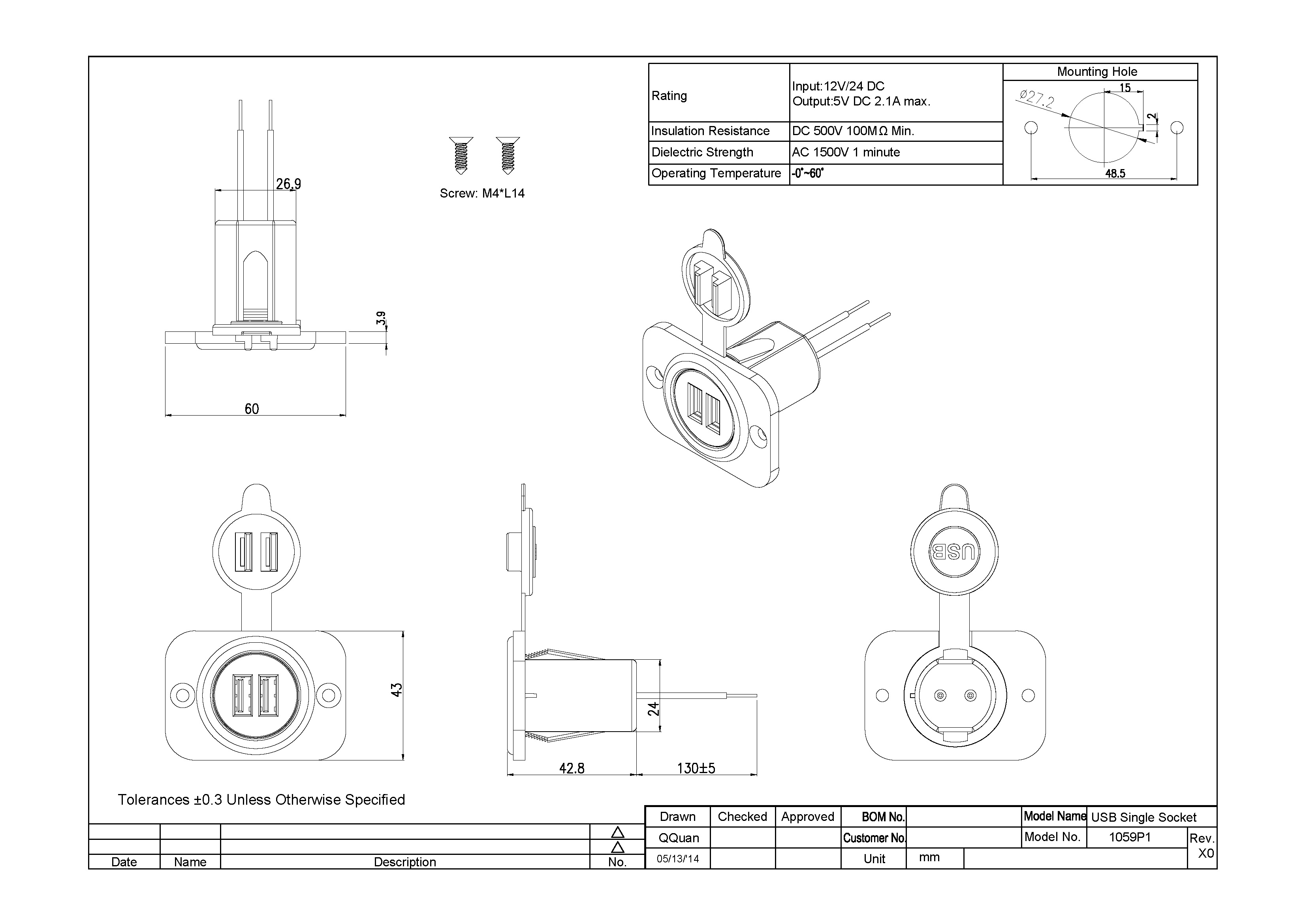 | Cable Spec | 150mm Length, UL1015 AWG18 | |