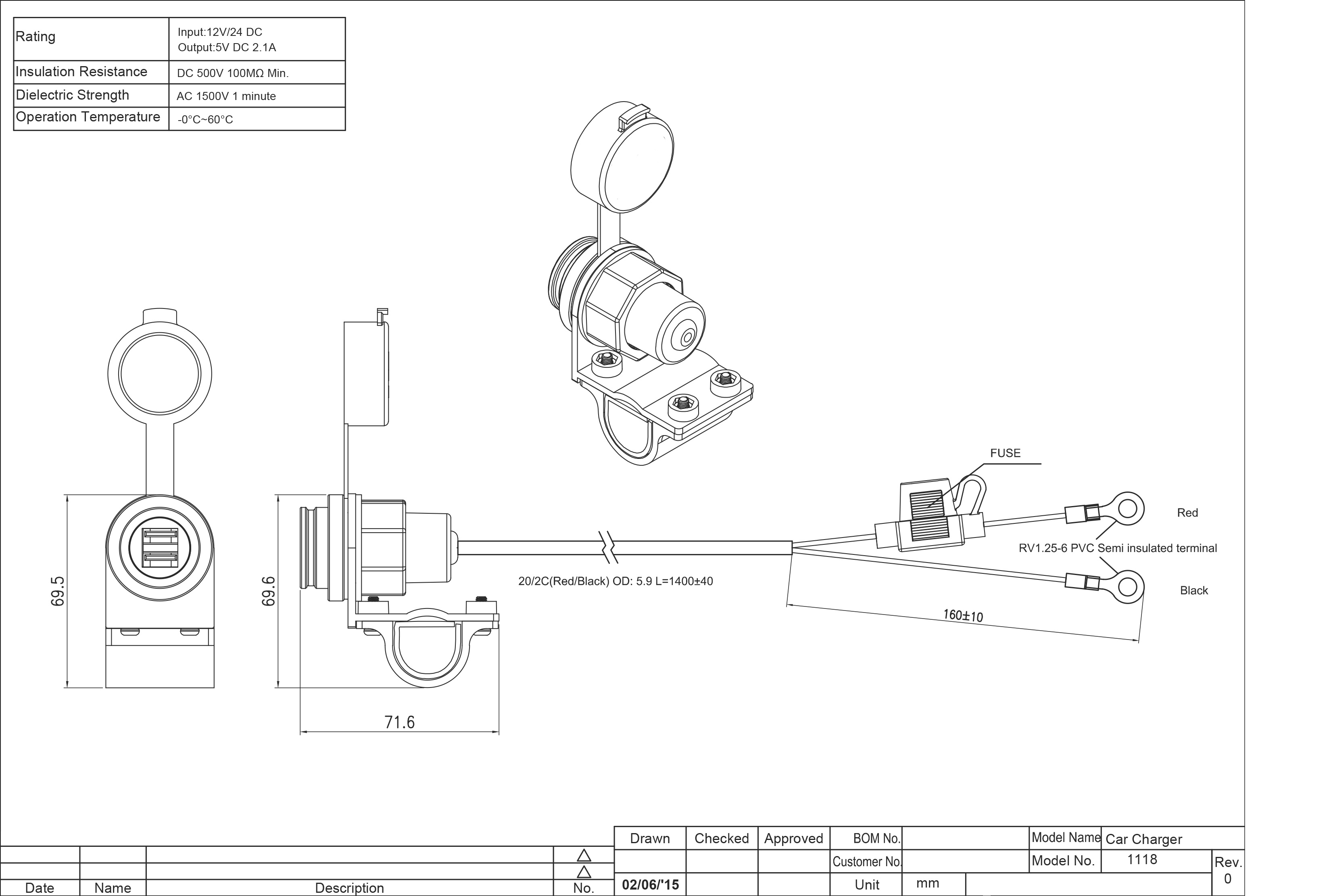 | Cable Spec | 1500mm Length, UL1015 AWG18 |